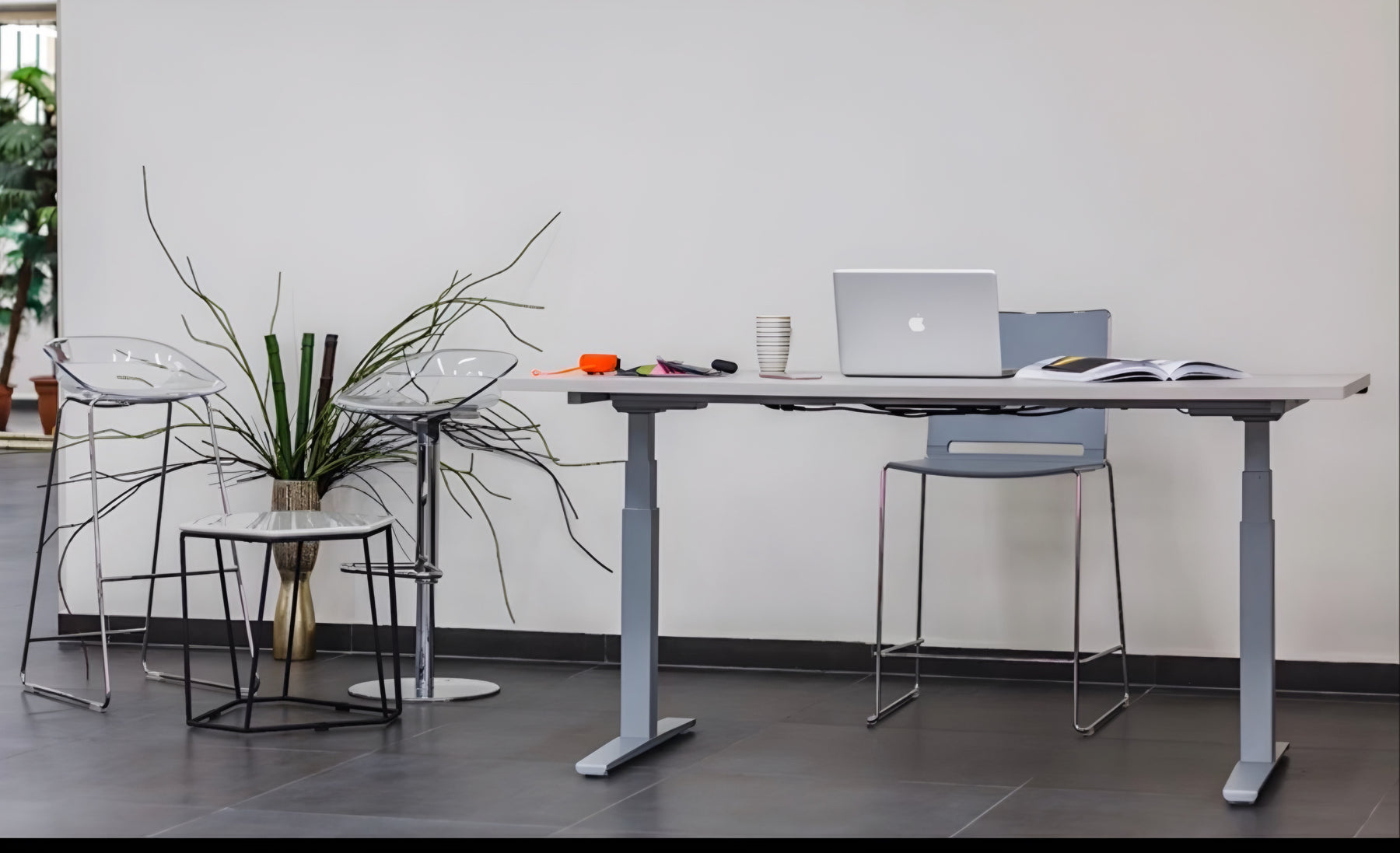 Electrical Desk, wooden top 18mm thickness and grey electrical legs, up and down height without mobile pedestal